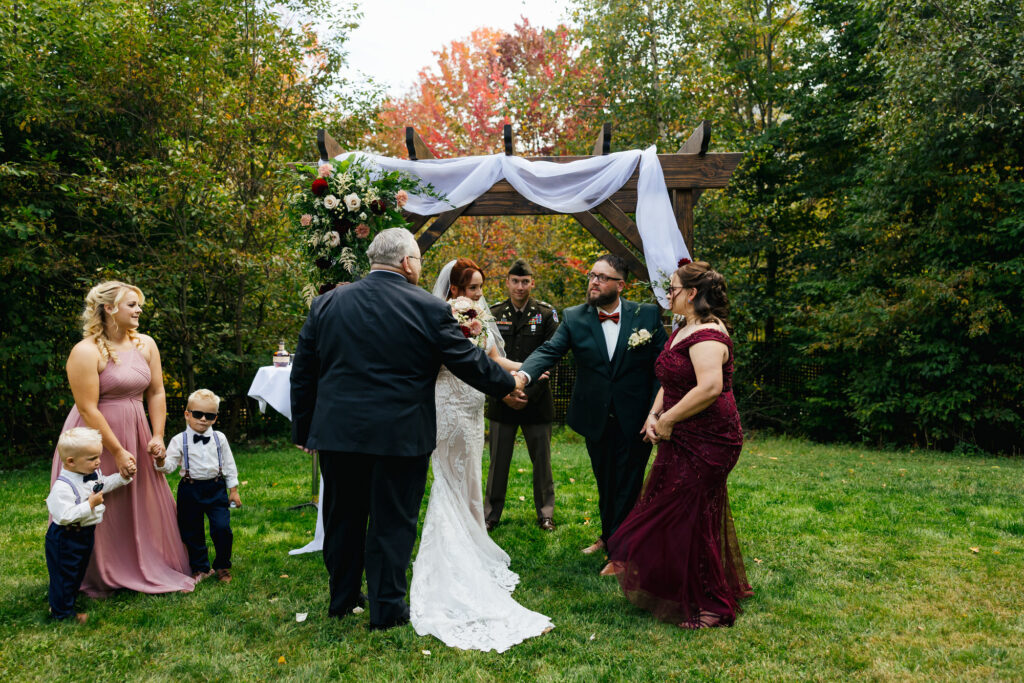 The Hudson Valley is quite honestly the perfect backdrop for any outdoor Wedding. Especially in the Catskills and especially in Fall. This backyard Micro Wedding took place in mid September in Hunter, New York. The Couple chose to rent a home in the Catskills to host their family and have the most intimate backyard Wedding.